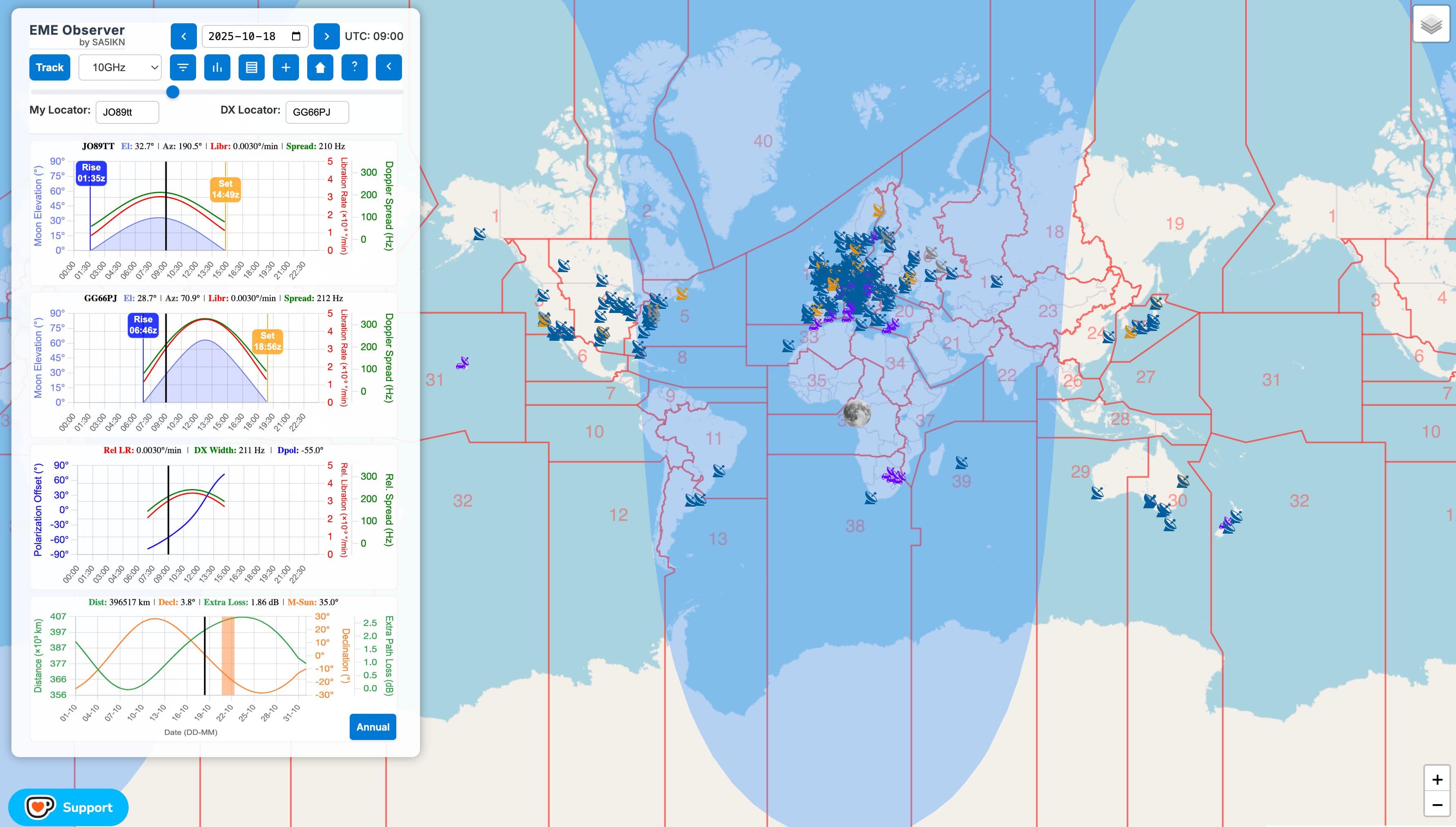 EME Observer is not a link budget calculator. It will not tell you whether a QSO is possible with your particular setup, but understanding the data it presents can significantly improve your chances.